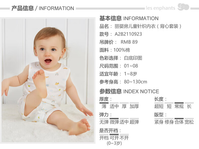 丽婴房(Les enphants)童装婴儿衣服儿童背心内衣套装男童棉质睡衣套装夏季家居服 蓝色 90 cm/2岁