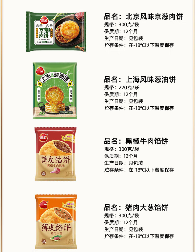 三全中式早餐 原味手抓饼 灌汤包小笼包牛肉大葱猪肉馅饼营养速冻食品 发面酱肉小笼包400g