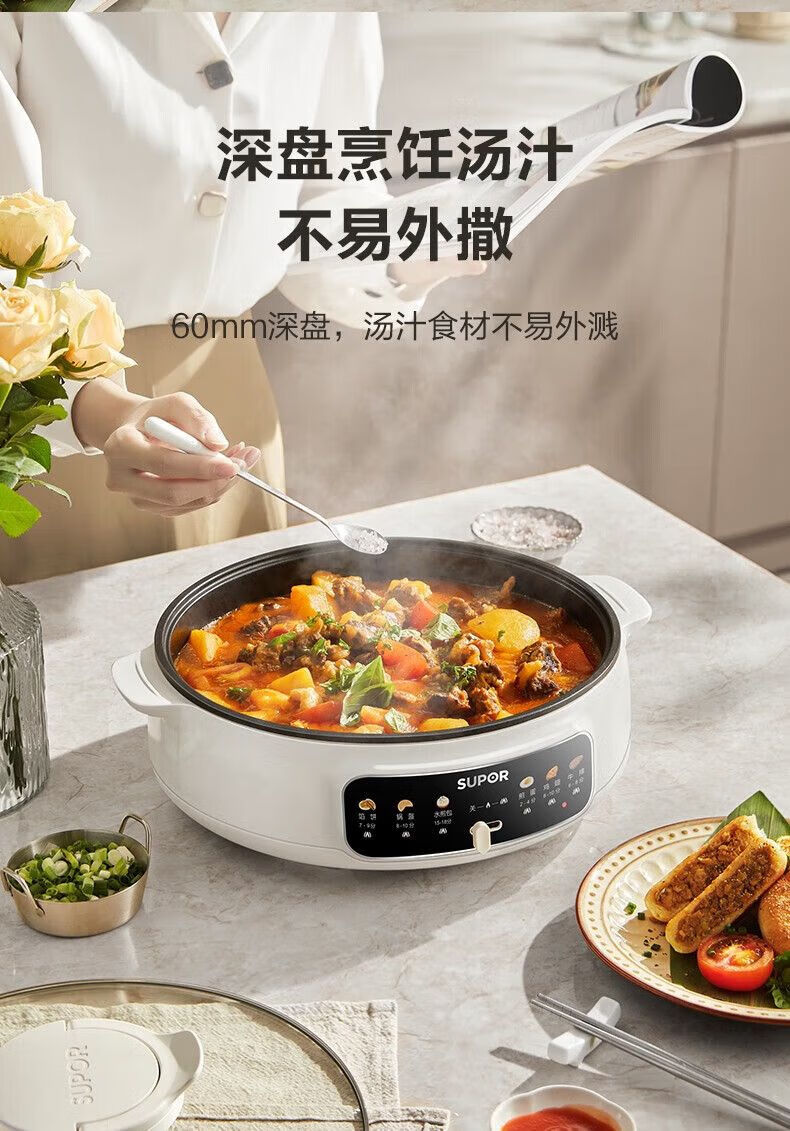 苏泊尔(SUPOR)电饼铛家用多功能不粘锅煎烤机单面烙饼机水煎包烤肉煎饼锅火锅加大加深烤盘大火力一体早餐机